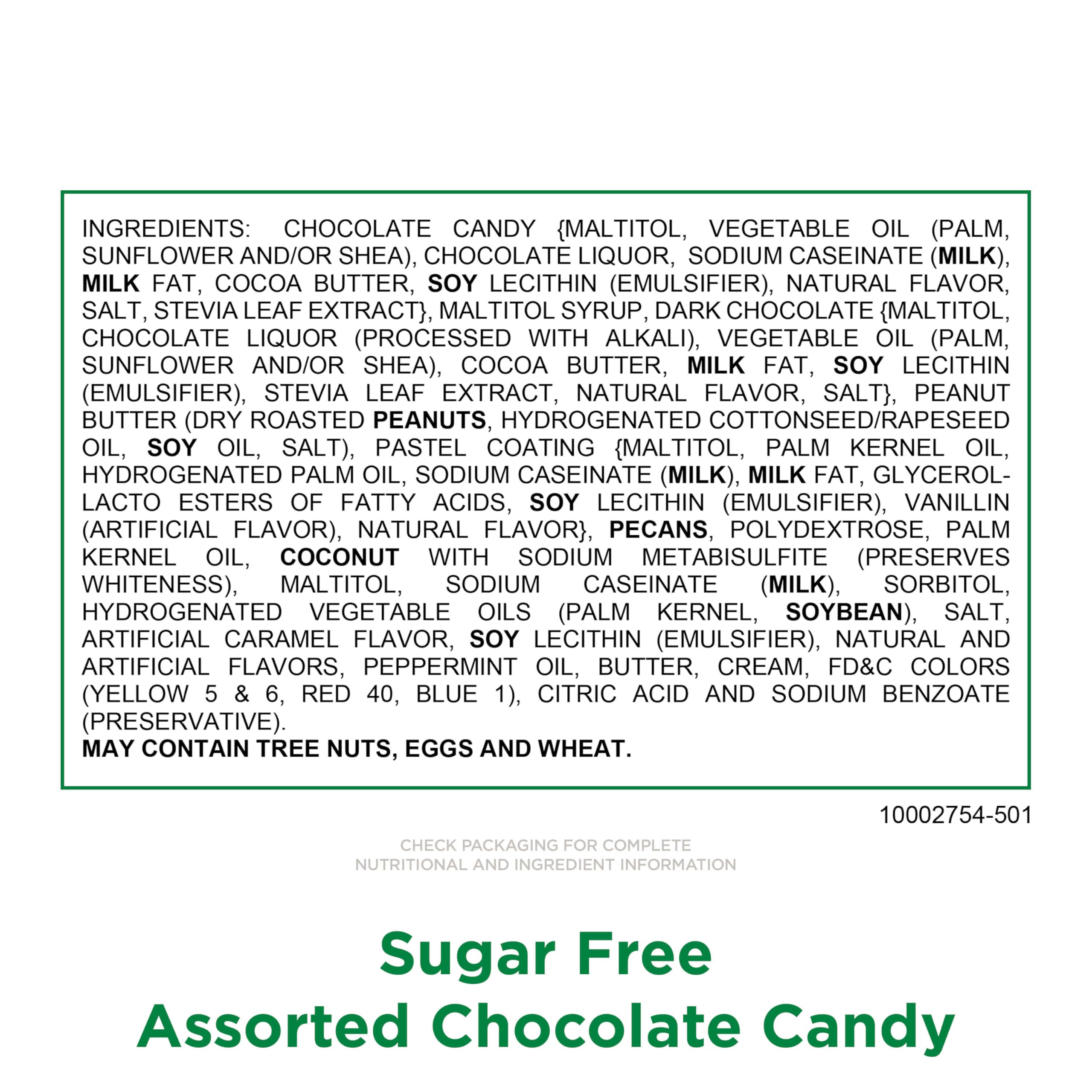 - RUSSELL STOVER Sugar Free Assorted Chocolate Candy, 15.7 oz., is made with Stevia extract, a plant-based sweetener that delivers all the sweet taste you crave with no added sugar.