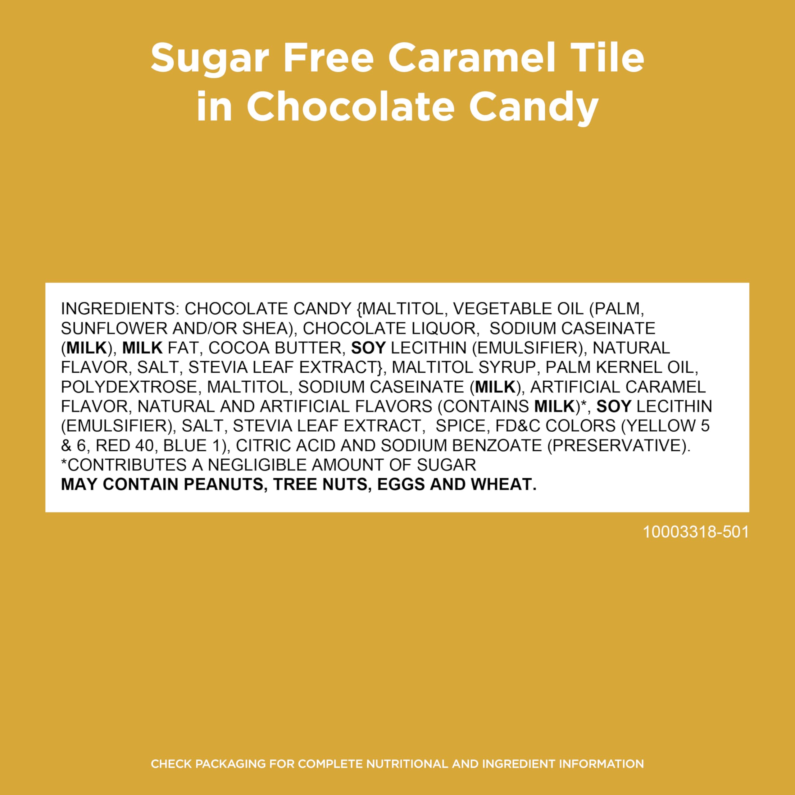 - No sugar, great taste! RUSSELL STOVER Sugar Free Caramel Chocolate Candy Tlles, 2.25 oz., is made with Stevia extract, a plant-based sweetener that delivers all the sweet taste you crave with no added sugar.