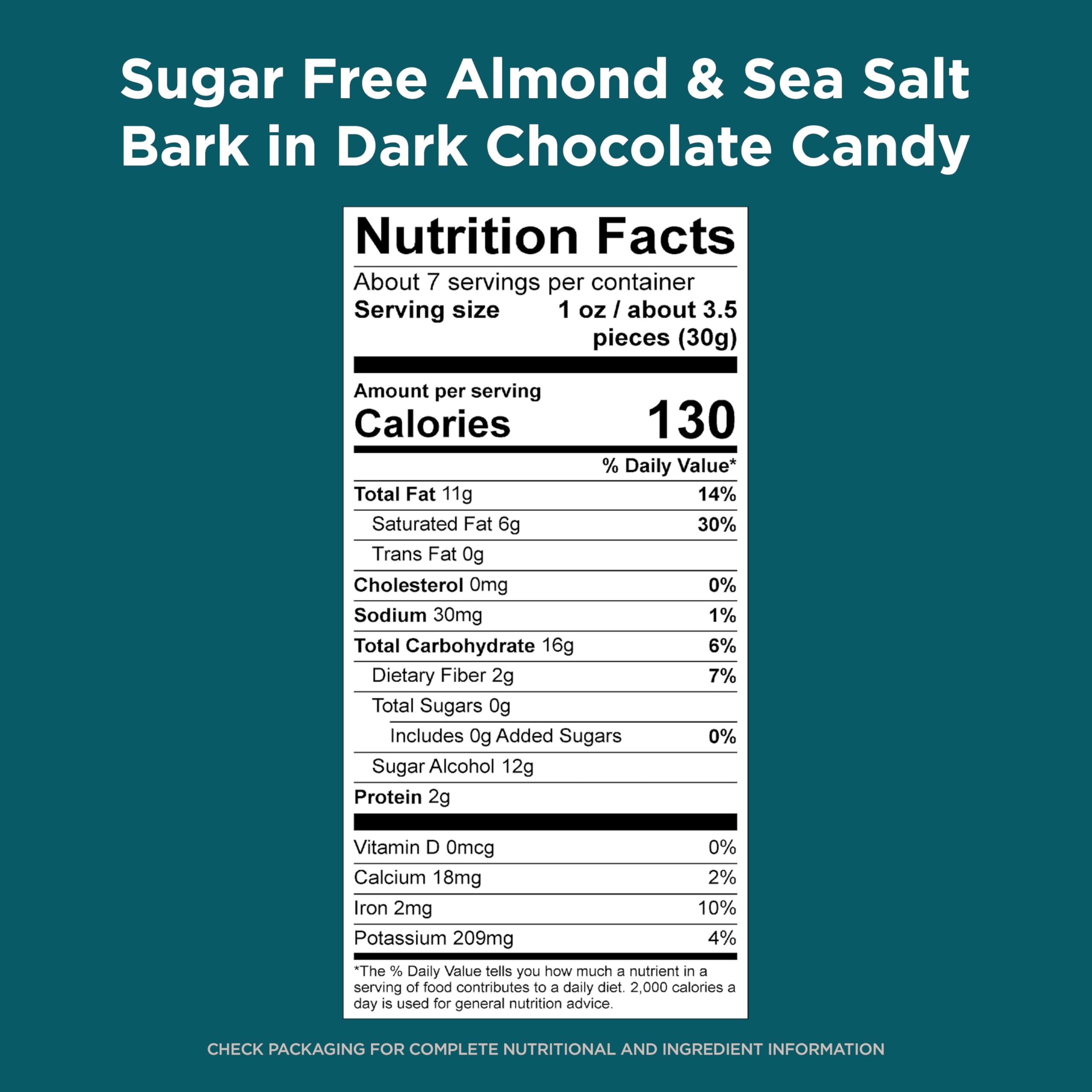 RUSSELL STOVER Sugar Free Dark Chocolate Almond & Sea Salt Bark, 7.5 oz bag (≈ 24 pieces)